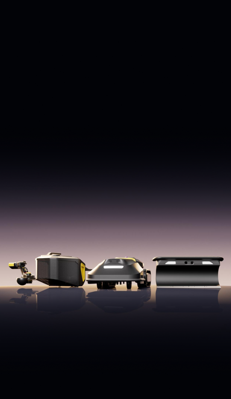 A tracked chassis with AI-powered grip assistance adapts to changing ground conditions, detecting slip and adjusting power to maintain traction on grass, soil, and mud.