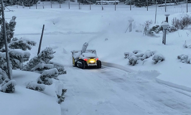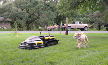 A tracked chassis with AI-powered grip assistance adapts to changing ground conditions, detecting slip and adjusting power to maintain traction on grass, soil, and mud.