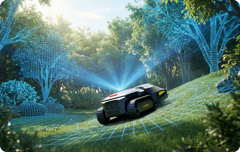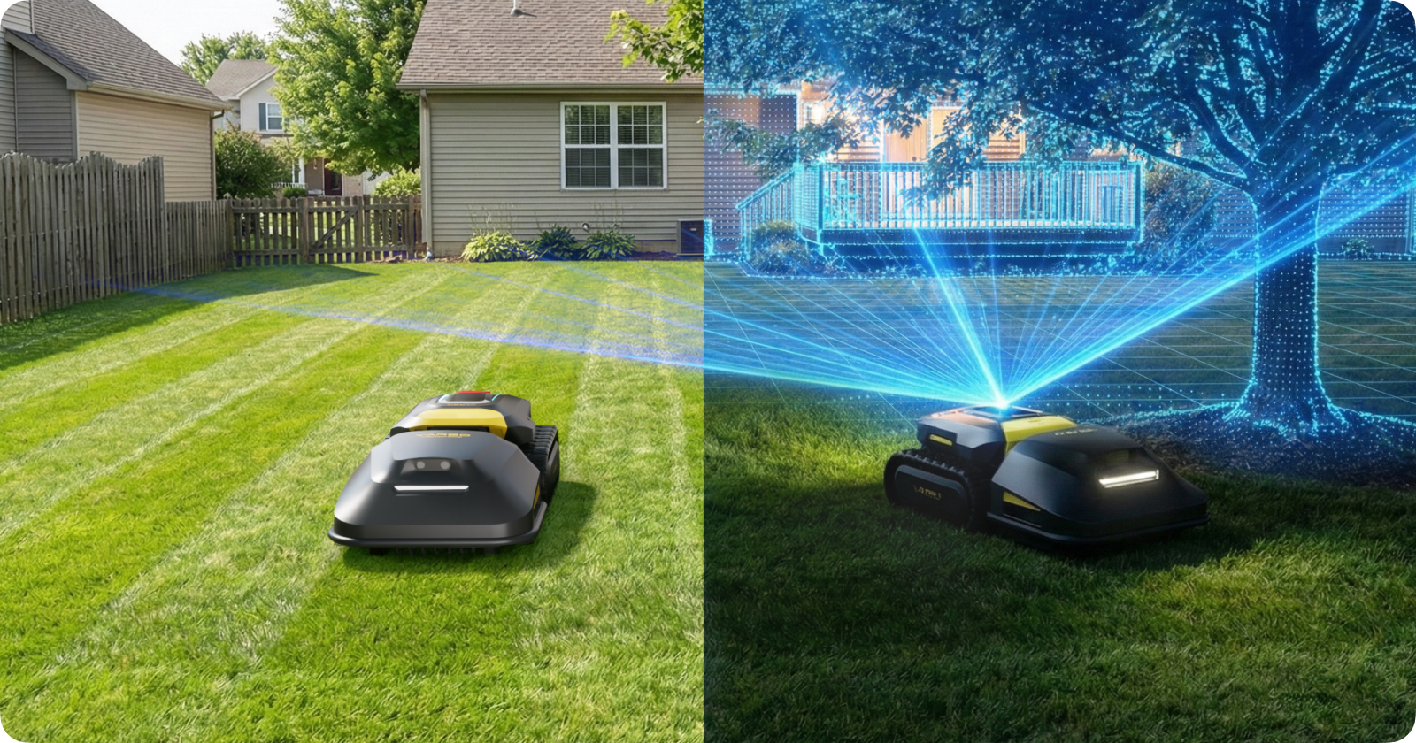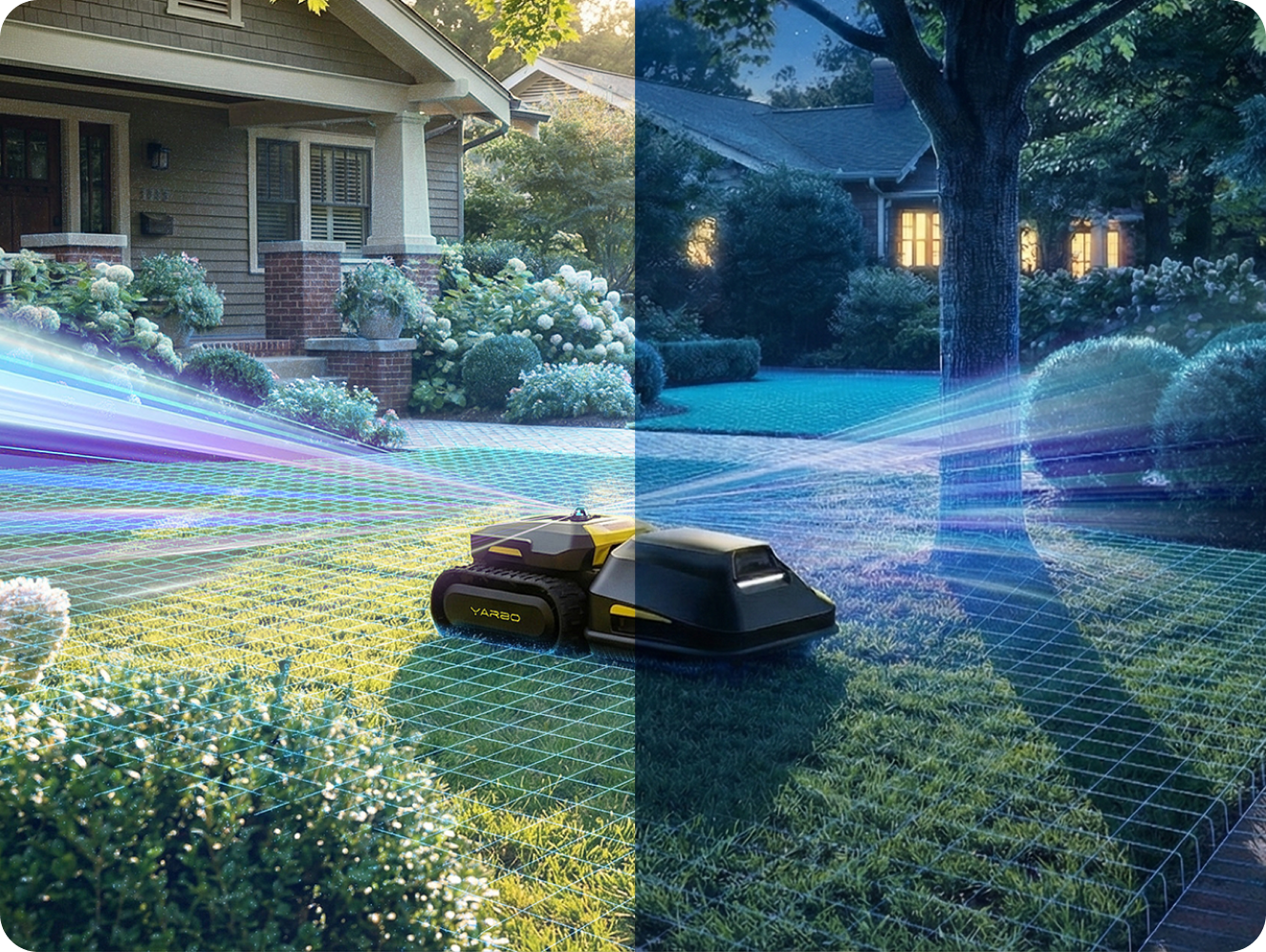 LiDAR builds a centimeter-level 360-degree 3D lawn map of your yard, working reliably in shaded, cluttered areas and at night.