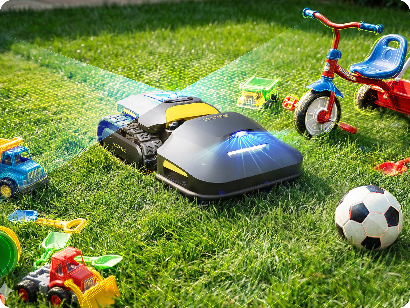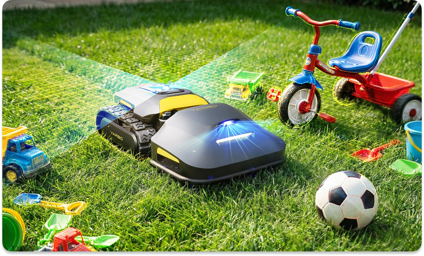 LiDAR with Dual AI Cameras helps to detect trees, toys, fences, people, and pets precisely, creating a safer yard.