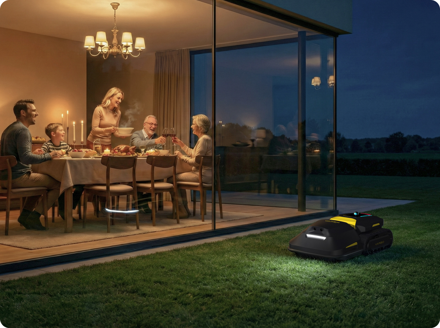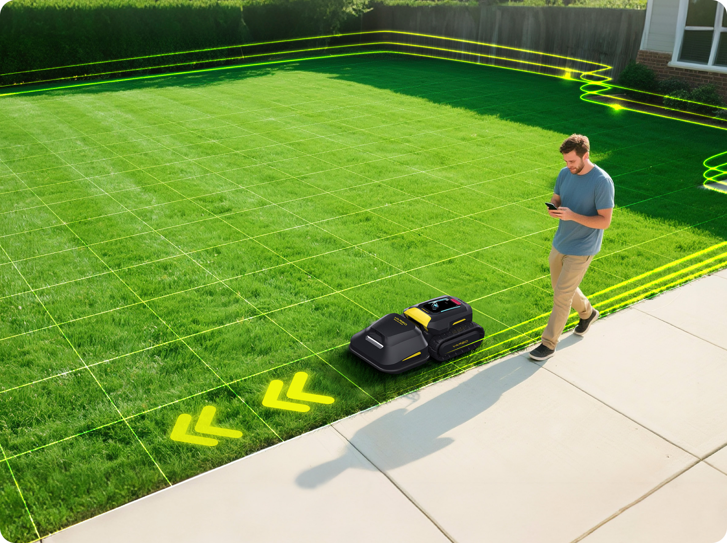 Built for Complex Yards with Wire-Free Setup and 360° LiDAR, Dual Al Cameras & nRTK Precision.